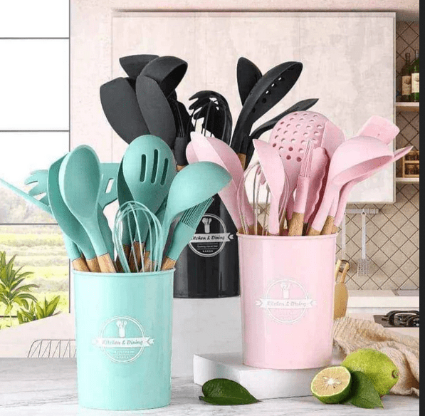 The Cooking Easy kitchen set is an irreplaceable reliable assistant in your kitchen, it contains 11 essential items for every housewife and a storage bucket. It is made of food grade, heat resistant, non-stick silicone and well polished natural wood. Safe for use with food, non-toxic, odorless, can withstand temperatures up to 230 ° C.