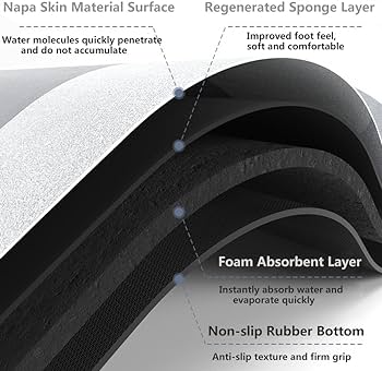 - Innovative Absorbent Bath Mat- Advanced nanotechnology and up to 90% porosity surface allow water to penetrate fast. The water absorption is up to 2-4 times its weight.