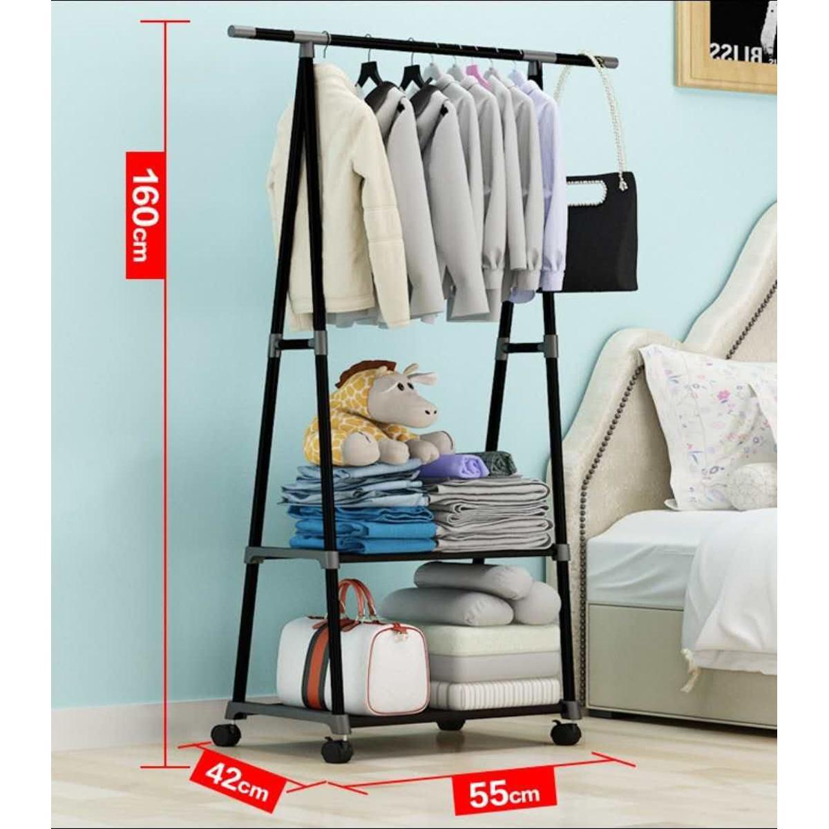 Multifunction Clothes Hanger Triangle Coat Rack Pakistan. Easy to assemble and easy to clean. Good combination of clothing rack and shoe rack. This portable garment laundry rack is definitely a great choice for homes and offices. Multifunctional floor coat rack, the lower can be placed shoes, the upper simple clothes hanging, indoor use simple and practical. Preferred for thickened steel pipes, durable 6mm diameter paint rust-proof steel pipe. Strong carrying capacity. Triangular design, strong stability.