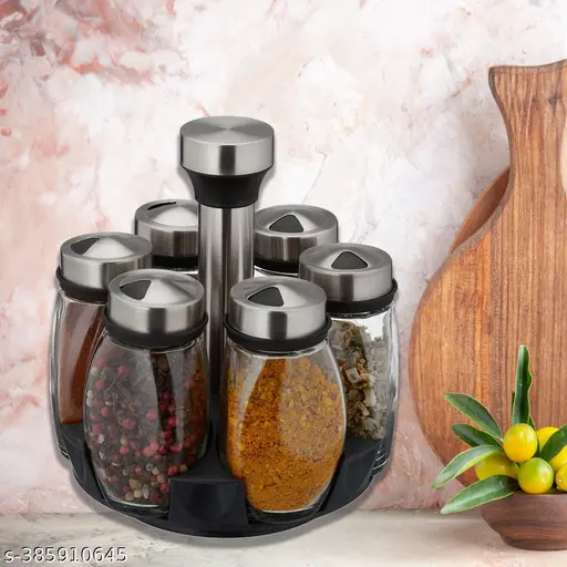 Each spice bottle is made of high quality glass and stainless steel making it hygienic and durable. The rotating rack is made of stainless steel and the chassis is made of ABS plastic to make the spice rack more durable.